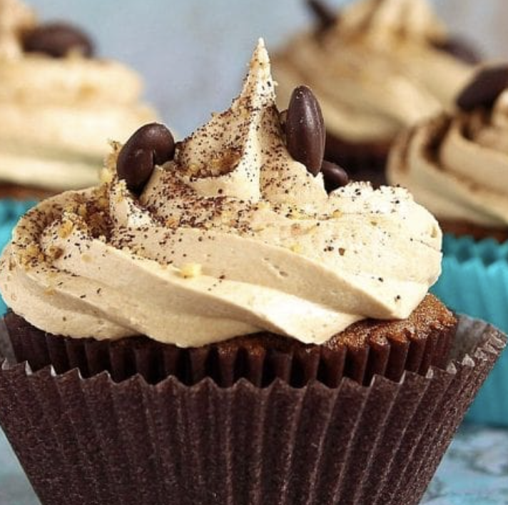 These Coffee Cupcakes are tender, moist, fluffy, and have perfect and delicious coffee flavor. They are eggless, buttery, have soft crumbs, and are topped with light coffee whipped cream frosting!