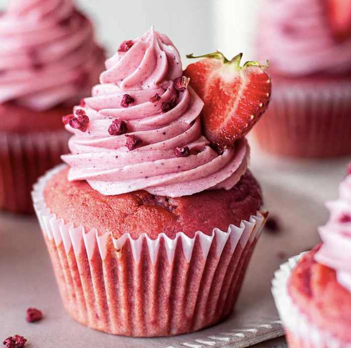 This easy Vegan Strawberry Cupcake recipe with a moist strawberry crumb filled with juicy strawberries pieces and topped with vegan strawberry buttercream.