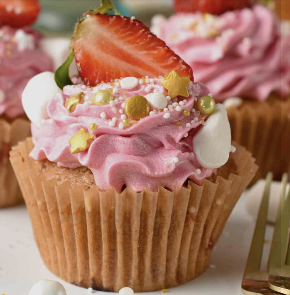 Easy vegan strawberry cupcakes that are packed with fresh strawberries and flavor! They are soft and fluffy and come together in just 1 bowl.